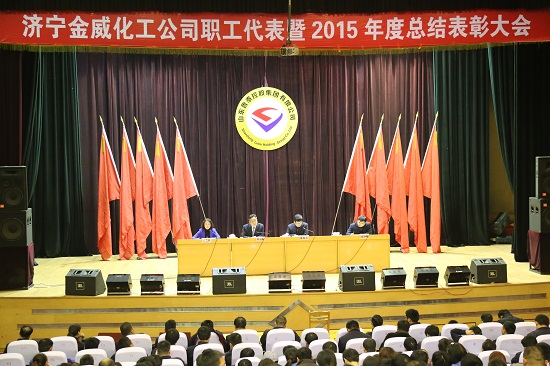 1月30日下午,金威化工召开职工代表暨2015年度工作总结表彰大会,总经理申玉海,副总经理陈海天、吴艳蕊、高中峰出席会议。大会由吴艳蕊主持,总经理助理、中层干部、职工代表、工段长及受表彰的先进集体和先进个人代表近200人参加了会议。