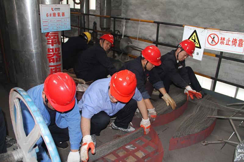 4月28日,热电公司后勤人员主动请战,到汽机车间帮助组装除氧器填料,为保证检修工作保质、保量、按时完成贡献出了自己的力量。