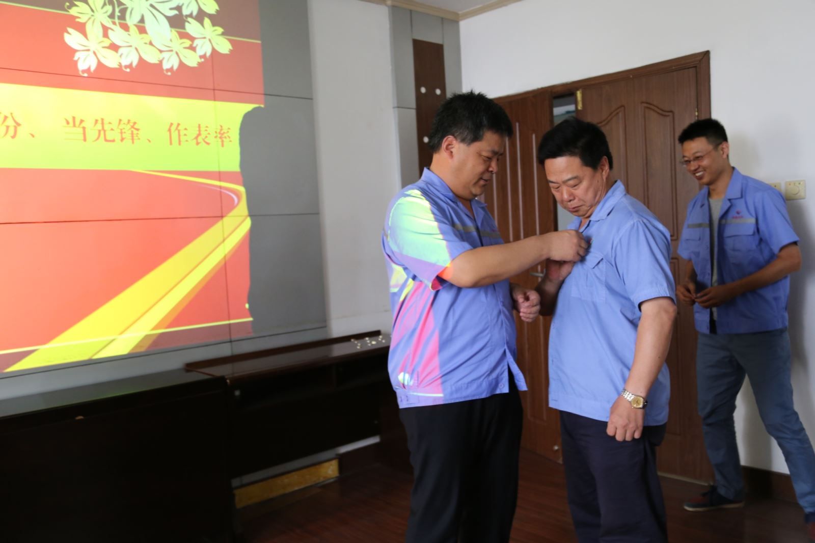 为庆祝中国共产党成立96周年,持续推进"两学一做"活动常态化,制度化,进一步增强了党员领导干部政治意识、大局意识、核心意识和看齐意识。按照集团公司党委《关于认真学习贯彻省第十一次党代会精神推进两学一做学习教育常态化制度化的通知》和《关于开展庆祝建党96周年"八个一"系列活动的通知》精神要求,7月1日上午,金威水泥以"两学一做"为主题,在支部书记张文学带领下,全体党员干部重温了入党誓词,举行了"带党徽、亮身份、当先锋、做表率"启动仪式,为每一位党员佩戴了党徽。同时支部书记张文学做了《不忘初心,方得始终》的专题党课活动。