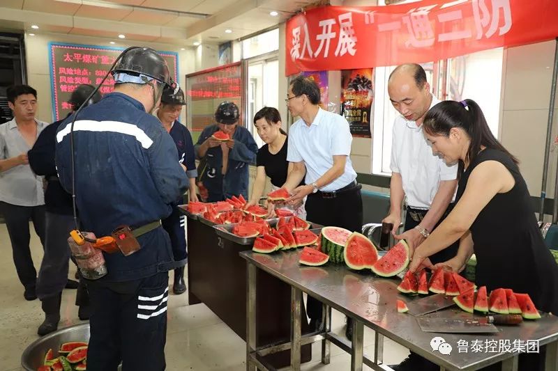7月23日下午,太平煤矿组织开展了“夏送清凉”活动,该矿党委书记、矿长邵国华将一块块西瓜递到工友们手中,并叮嘱大家注意防暑,注重健康,确保安全生产。矿党委副书记、工会主席陈源参加送清凉活动。