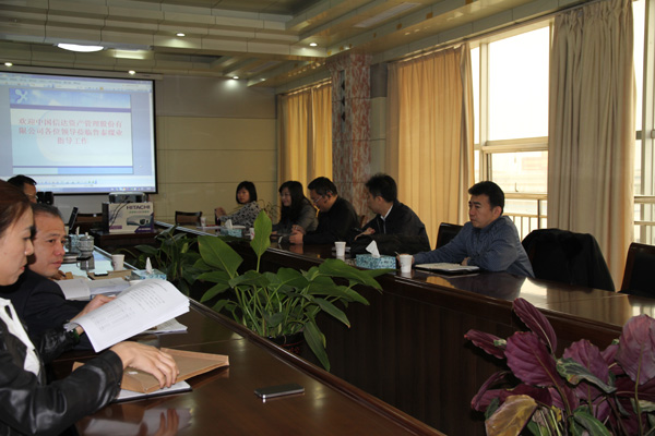 在调研座谈会上,李合军向信达公司领导详细汇报了公司基本情况、公司确立的发展思路和运作模式及发展规划、公司项目建设情况及2013年将要开展的工作等内容。同时,安排相关部门的同志通过幻灯片演示了新疆白杨河煤矿并购工作推进情况和公司《中长期发展规划(讨论稿)》。肖作飞就金威煤电公司与德国CABB公司合资合作建设5万吨高纯氯乙酸项目做了详细介绍。