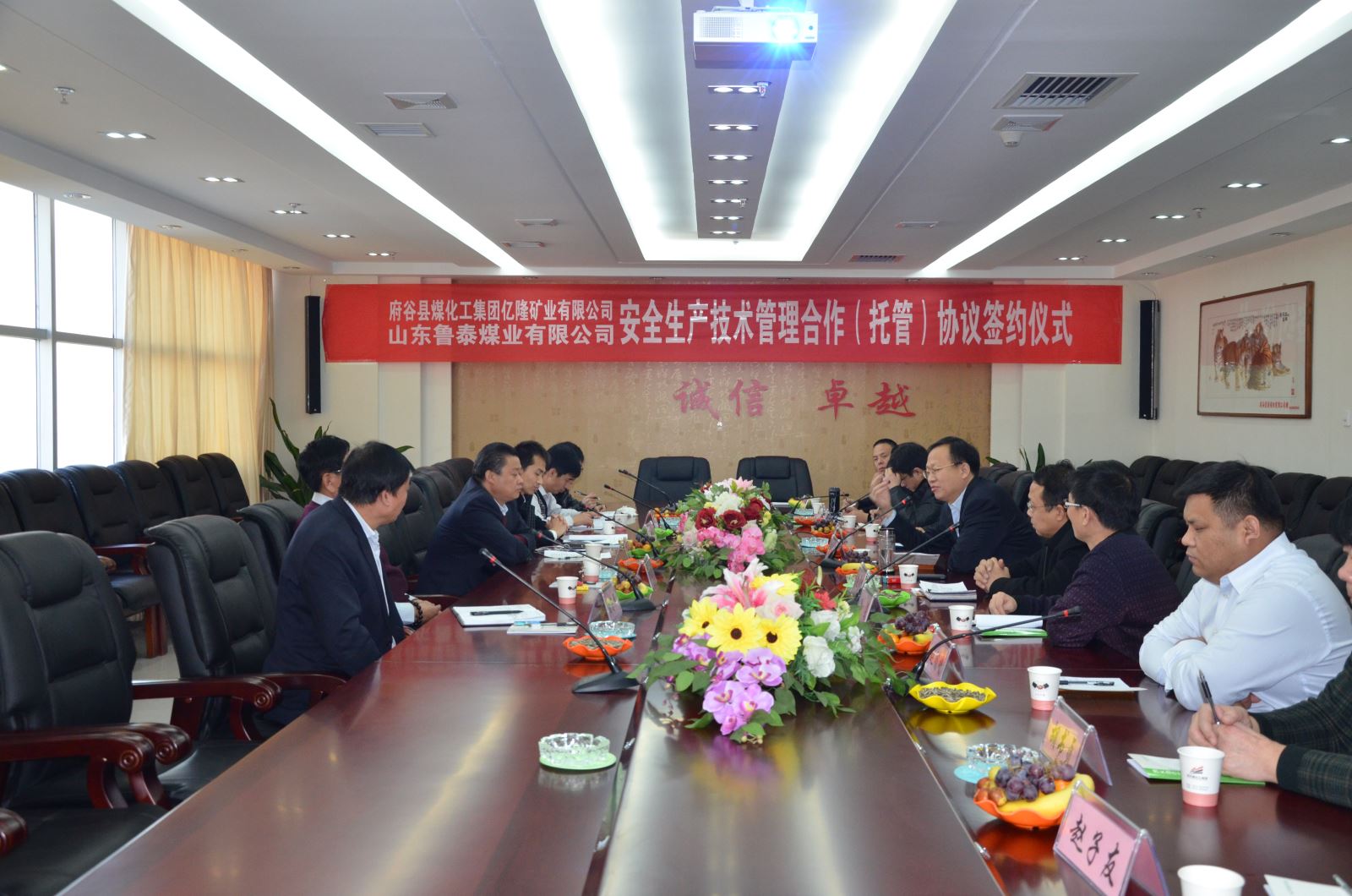 李合军和王爱田分别致辞。在致辞中,双方认为,B体育(中国)一站式服务平台煤业公司托管亿隆矿业有限公司是强强联合,能够实现优势互补,实现共赢。B体育(中国)一站式服务平台煤业公司产业布局合理、管理先进,特别是安全管理、技术管理优势突出,在山东省乃至全国都名列前茅。B体育(中国)一站式服务平台煤业公司托管亿隆矿业有限公司,能够把好的管理经验、先进的采掘技术移植到亿隆矿业有限公司,把亿隆矿业有限公司建设成为安全、高效、"双基"建设、"质量标准化"的样板矿井。府谷煤化集团是中国民企500强,是一家管理规范、在陕蒙地区具有较大影响力的民营B体育平台。B体育(中国)一站式服务平台煤业公司能够借助这个平台唱响B体育(中国)一站式服务平台煤业公司煤矿托管服务品牌,能更好的向陕蒙地区辐射煤矿托管服务品牌影响力,为下步托管更多煤矿打下坚实基础。同时,府谷煤化集团煤化工产业和B体育(中国)一站式服务平台煤业公司非煤产业有合作的结合点和切入点,今后更多领域、更深度合作前景广阔。双方表示,在今后合作中,将严格按照合同约定,相互支持、相互理解、相互包容、相互沟通,齐心协力,共同发力,共创美好明天。
