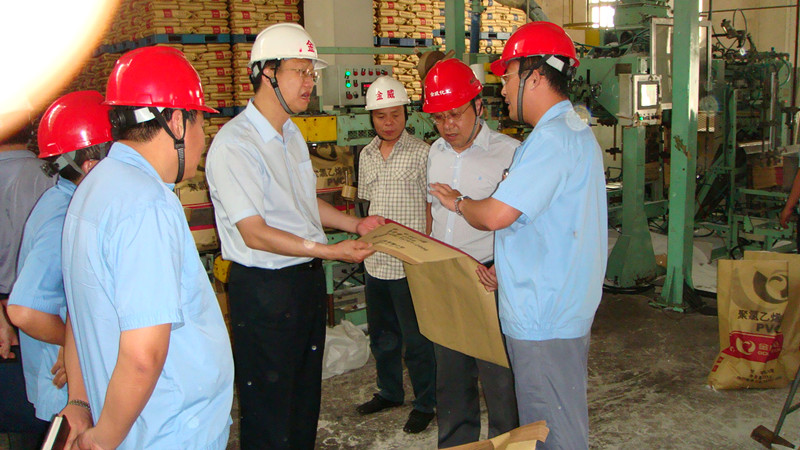 李合军先后深入金威化工pvc生产包装、烧碱、液氯充装车间、厂区等地进行深入细致地实地查看。边查看边与在岗职工进行沟通和交流,详细询问生产过程中工作细节问题,细致了解现场管理中存在的问题和不足。在实地查看过程中,对检查发现的pvc包装袋质量、液氯充装、测试液氯罐防漏试剂瓶排放和标注、厂区环境卫生等方面存在的问题和不足一一提出了整改意见和建议。实地查看结束后,李合军对现场管理工作提升和近期有关重点工作进行了安排和部署: