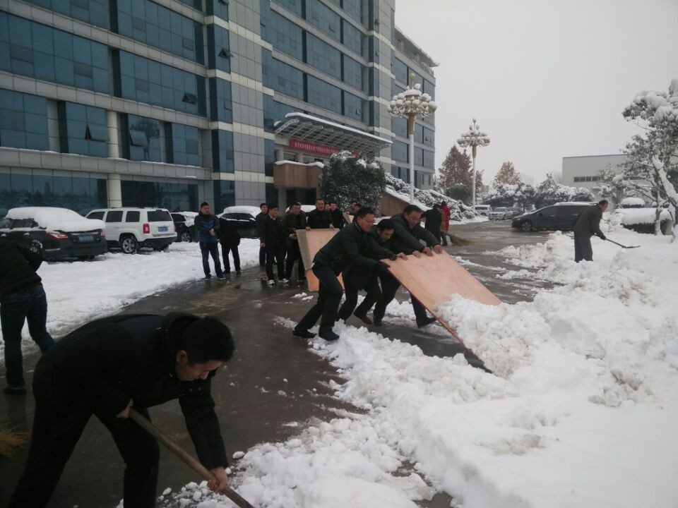 从11月23日开始,济宁地区普降大雪,一天下来,厚厚的白雪覆盖了整个市区,集团公司周围的积雪深度已达20多厘米以上。此时气温骤降,积雪如果再结成冰,将给行人带来了更大的不便。这时,集团公司领导带头、在家的工作人员也纷纷下楼加入到扫雪队伍。大家挥舞着大扫帚,铁锹和雪铲,不畏严寒,奋力将积雪铲平。