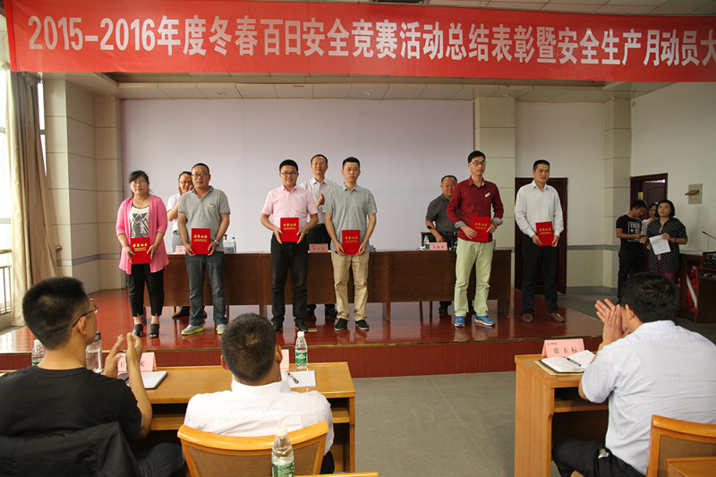 鲍学彬宣读了《关于表彰 "2015-2016年度冬春百日安全竞赛"活动先进集体和先进个人的决定》,并对先进集体和先进个人代表进行了颁奖。