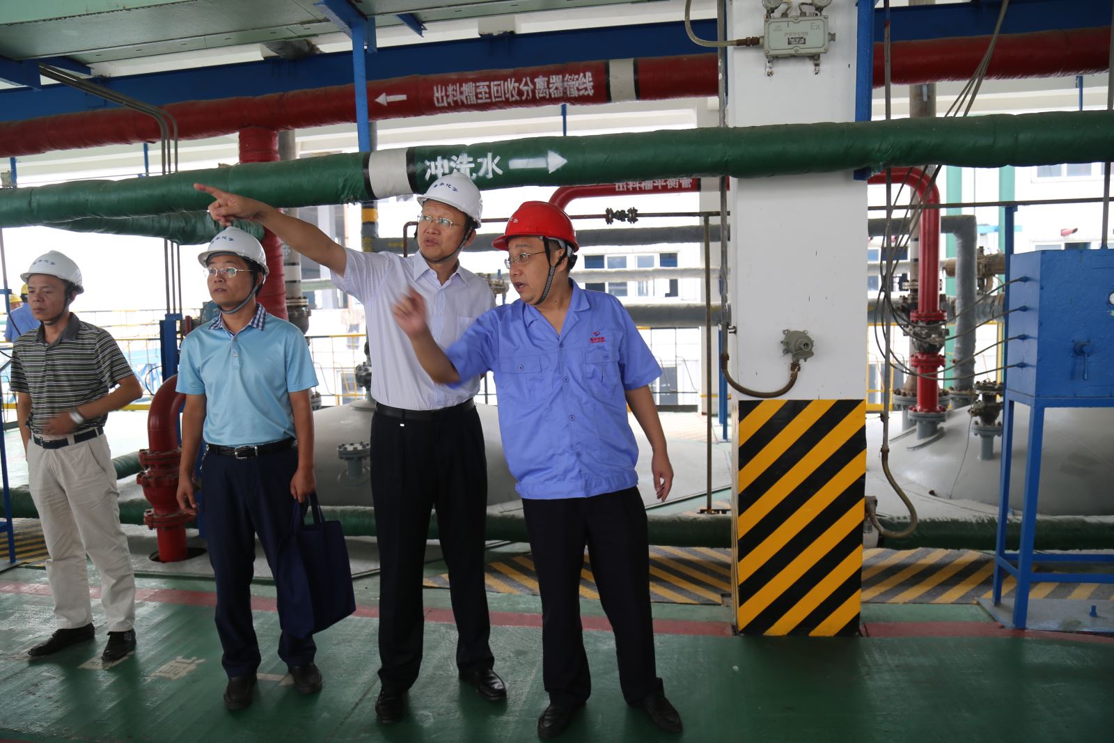 李合军一行实地检查了PVC目视化管理现场、电石自动取样分析管理全过程,并深入到二期聚氯乙烯填平补齐项目现场研究讨论加快建设的方案措施,分析解决项目建设中遇到的问题。