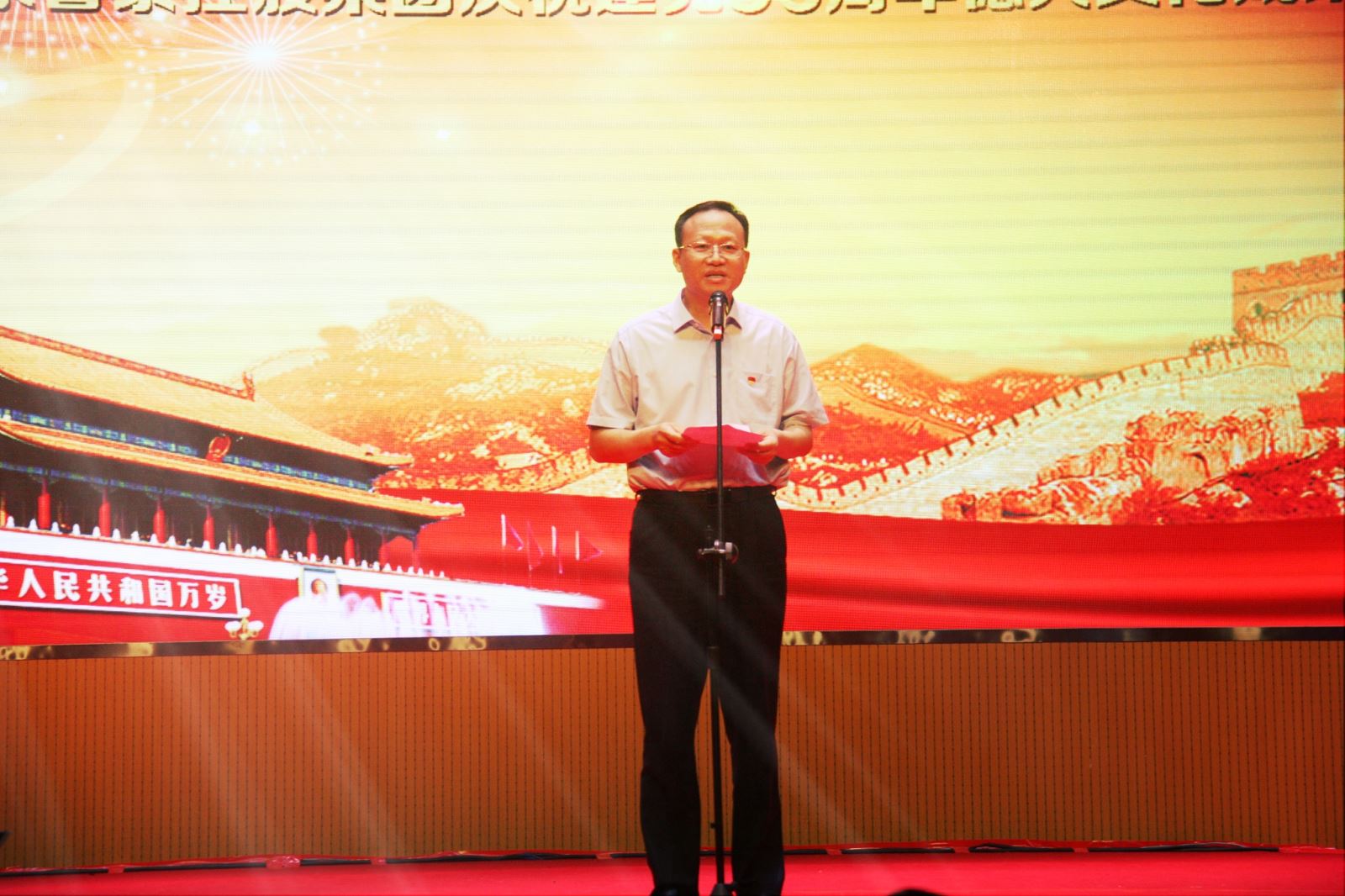 红色的情怀,激情的演绎。演出在舞蹈《山丹丹花开红艳艳》拉开序幕,充满浓厚陕北风情的舞蹈,打开了记忆之门,仿佛又把观众带到了那个热血沸腾的年代。歌曲 《东方红》、情景剧《36天的奇迹》、舞蹈《党旗飘飘》、小品《要听党的话》、戏曲联唱《金典记忆》、舞蹈《回族姑娘》、歌曲《新走西口》、舞蹈《缅桂花开献给党》、歌曲联唱《微山湖》《敖包相会》《花儿与少年》《泪蛋蛋泡在沙蒿蒿林》、舞蹈《碧波孔雀》、歌曲《以B体育(中国)一站式服务平台的名义》、小品《暖心》、音乐快板《竹板声声赞"德兴"》、诗朗诵《"德兴"文化赞》、小品《原来如此》、歌伴舞《共圆B体育(中国)一站式服务平台梦》,一个个精彩的节目,博得在场观众阵阵掌声。演出在歌曲《不忘初心》中结束,歌声大气磅礴、委婉动听,让人重温共产党人用生命和热血铸就的雄壮历史,重温革命先辈用理想和信念丈量的伟大远征,将整场演出推向高潮。