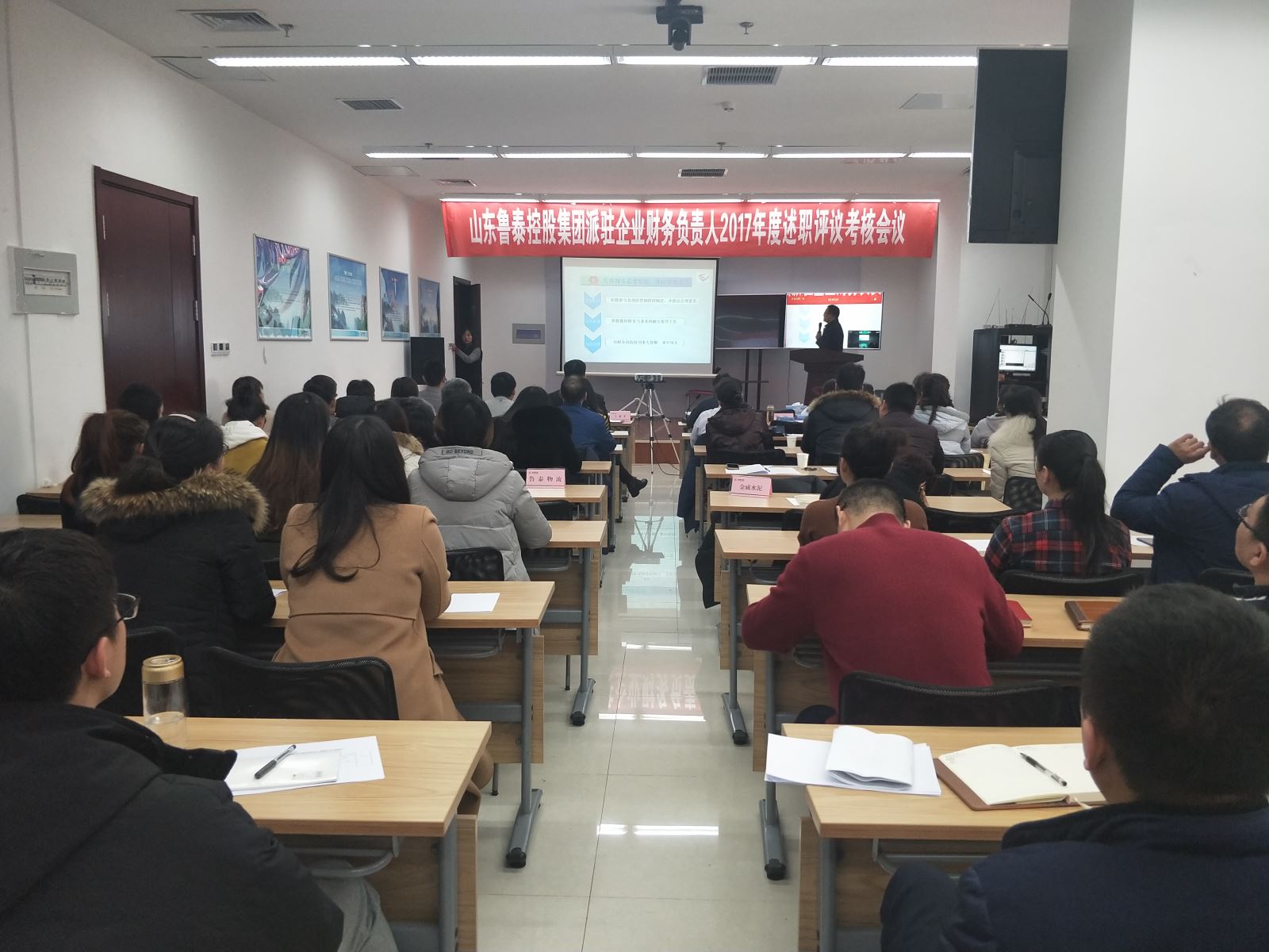 1月27日上午,集团公司召开2017年度委派财务负责人述职评议考核会议,委派财务负责人结合PPT进行述职。集团公司副总经理薛培华、副总会计师王亚平参加会议,财务部经理邢善主持会议。