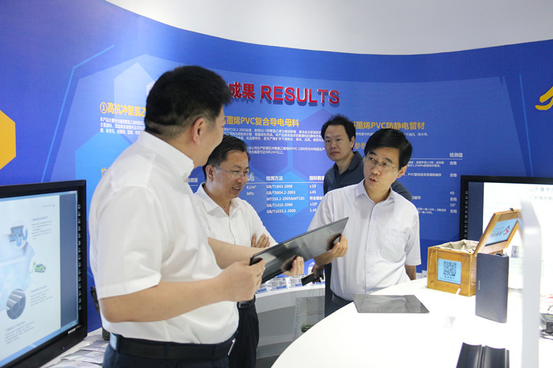 调研组一行首先参观了集团公司展厅,认真了解公司总体情况与石墨烯项目的研发情况,对集团公司转型发展的思路、做法和成效给予高度赞赏。在B体育(中国)一站式服务平台物流公司,详细了解了B体育(中国)一站式服务平台物流"互联网+"物流发展现状,供应链物流增值服务和货滴云轻资产物流服务的商业模式。