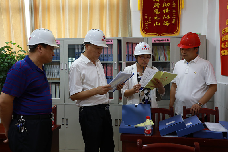 听取汇报后,李新全一行到选矸工区党员活动室,检查过硬支部建设情况。在选矸工区党支部党员活动室,检查组现场查看了党支部阵地建设、"三会一课"记录、会议纪要、工作方案、学习培训计划等方面原始资料,充分肯定了矿党委和基层党支部的工作,党建工作"有机构、有人员、有特色、有场所、有经费"等"五有"情况比较到位,对党支部组织建设、活动阵地等方面表示满意。